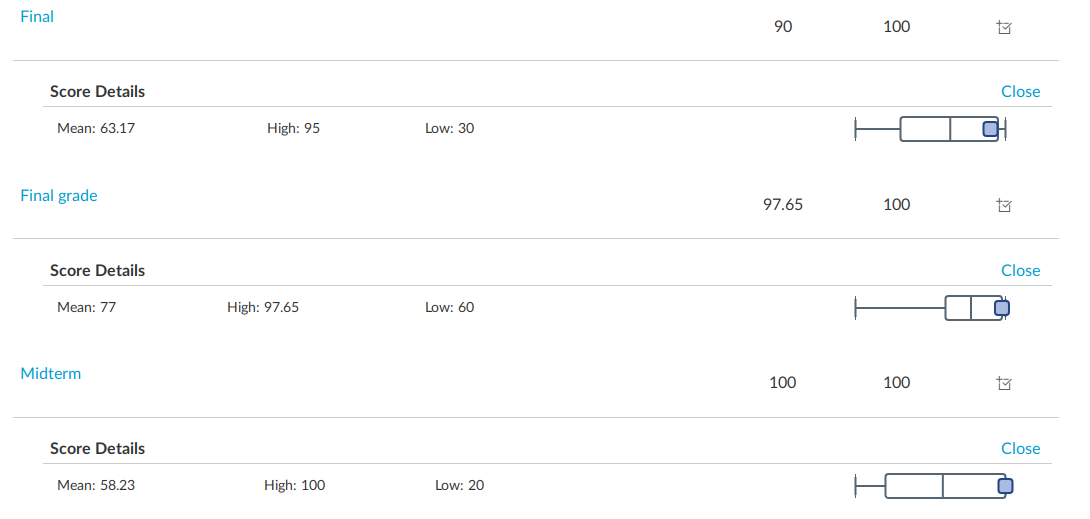 由於期中同學普遍考得比較糟(COOL顯示原始成績的平均為57.93,挺創的吧),教授後有調整期中分數,據說是「調成跟期末考差不多」。調整後期中平均 71、中位數 76.8,期末(無調分)平均則為76.48左右(這是COOL上顯示的平均,我找不到確切數據)。